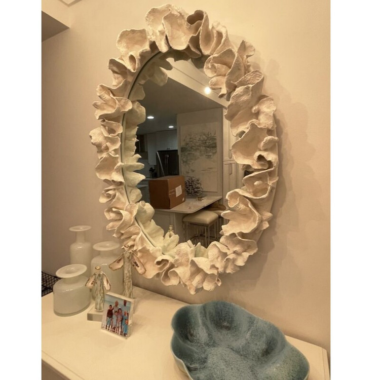 آینه مدرن گرد کار شده با خمیر مخصوص مجسمه سازی که به صورت بی رنگ و رنگی قابل سفارش است