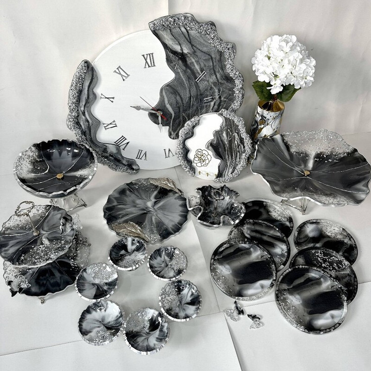 سرویس و ظروف پذیرایی رزینی سرویس کامل6نفره جهیزیه ب همراه ساعت قطر۶۰ و جاکلیدی