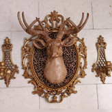 قاب آینه دیوارکوب طرح گوزن به همراه شمعدان دیواری