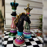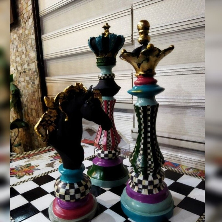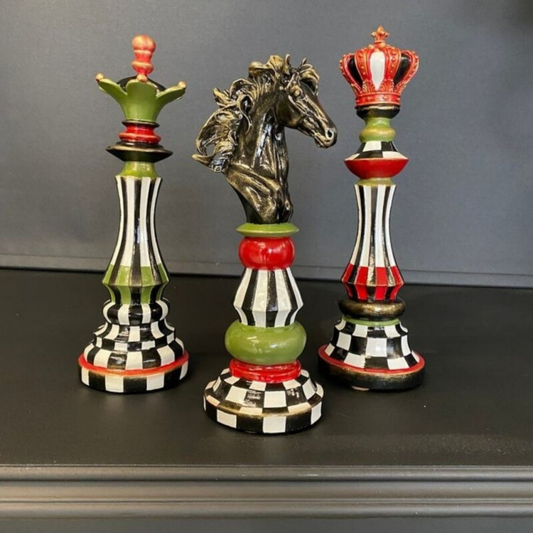 مجسمه مهره شطرنج رومیزی دکوری مجموعه سه عددی طرح شطرنجی چند رنگ