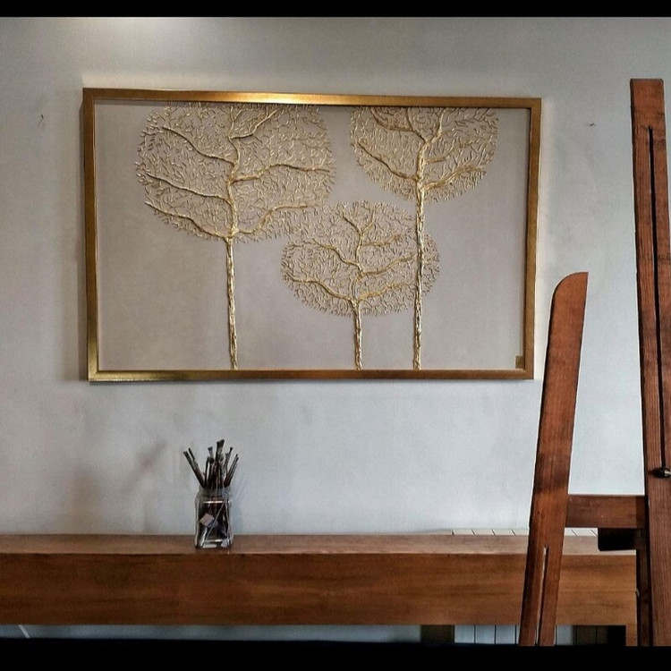 تابلو ورق طلا طرح درختان سربه فلک کشیده ابعاد120در100 به همراه قاب