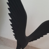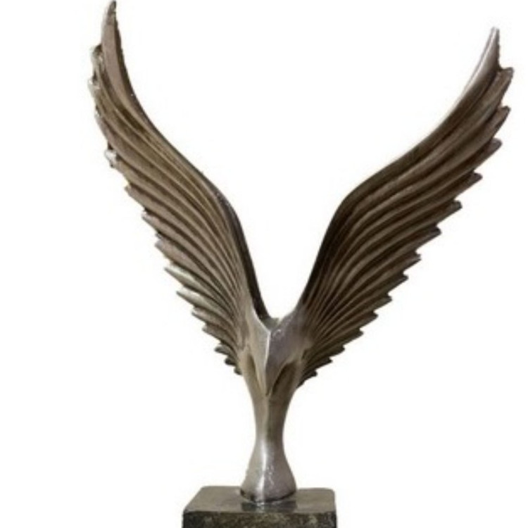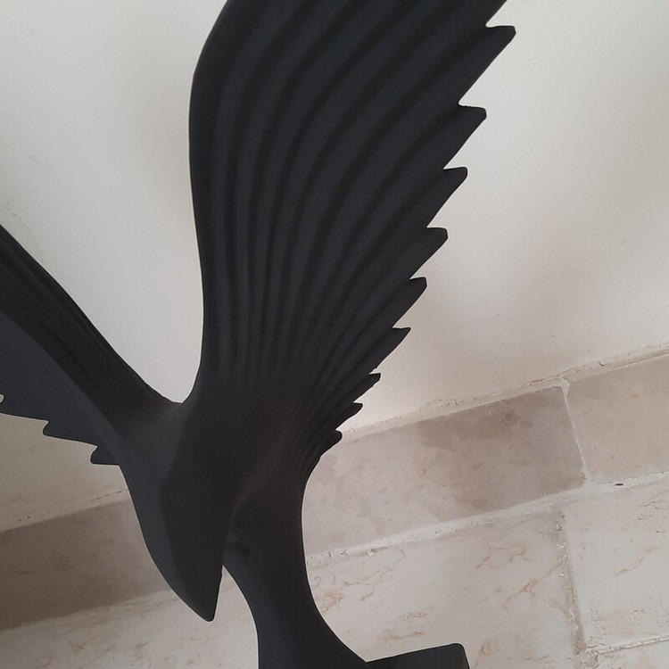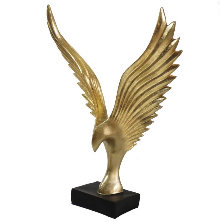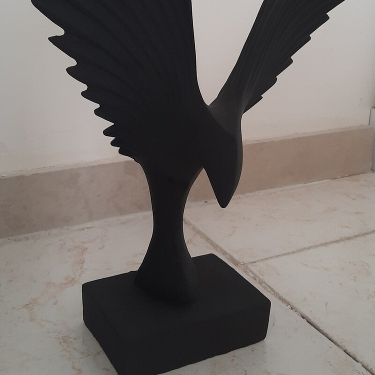 مجسمه طرح عقاب یک کار خاص و حرفه ای برای روی میز های اداری و دکوراسیون منزل که درخشش خاصی به خود اختصاص داده است کار طلایی تمام ورق طلا به جز پایه کار نقره ای تمام ورق نقره به جز پایه