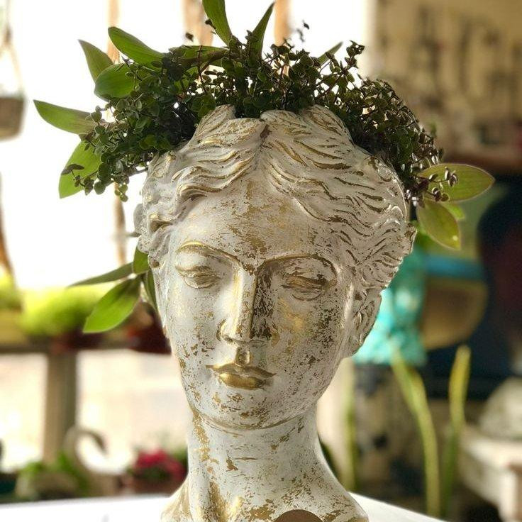 گلدان پلی استر مدل بانوی یونانی مجسمه پتینه ارتفاع 30