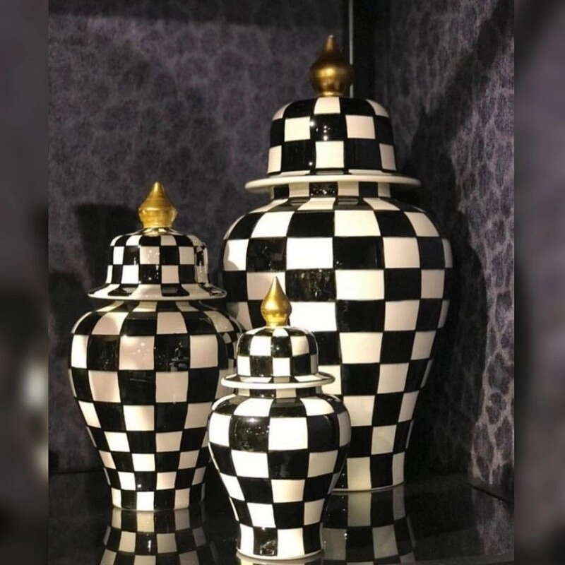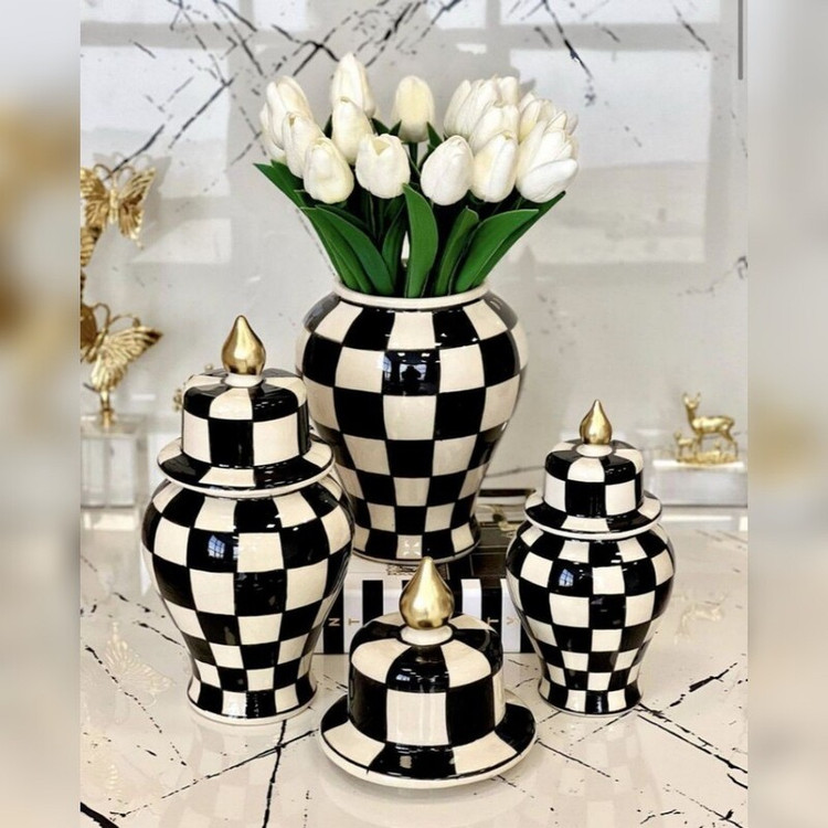 بانگه سه تایی بانکه سه عددی دکوری تزئینی گلدان طرح شطرنجی چهارخانه