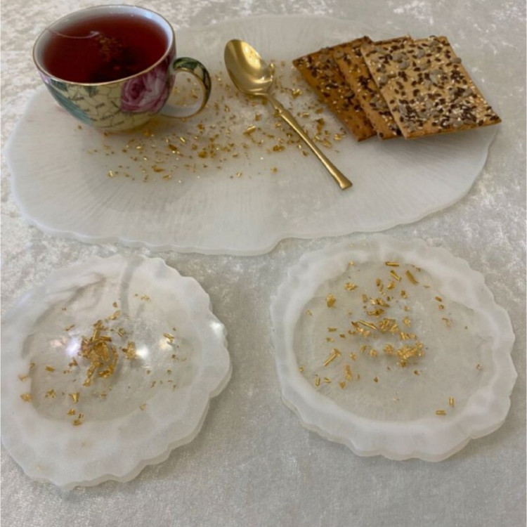 سینی دفرمه رزینی به همراه ۶ عدد زیر استکانی و استند زیر استکانی
