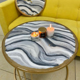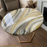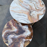 میز جلو مبلی رزینی طرح گرد قطر80 جهیزیه عروس قابل اجرا در ابعاد دلخواه و تم رنگی دلخواه همراه کار یه ساعت هم ست میز هدیه داده میشود