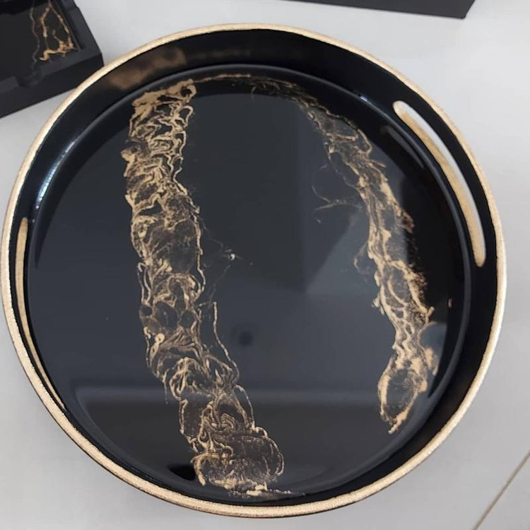 ست سینی و جادستمال و زیر استکانی رزین مجموعه سه عددی