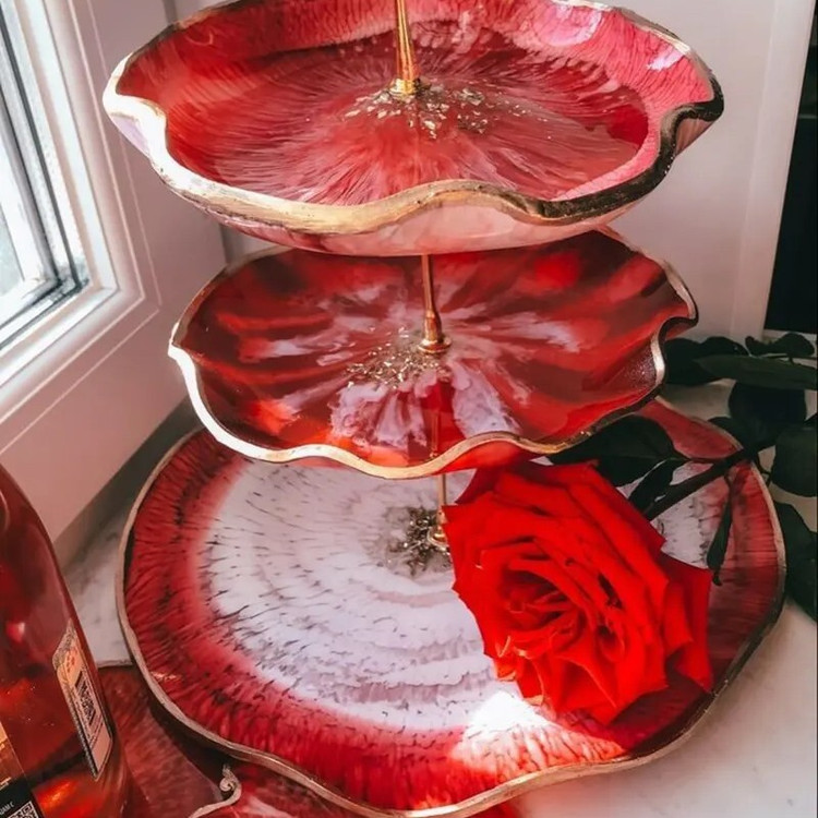 ظرف سرو و پذیرایی رزینی قرمز ب همراه پیش دستی