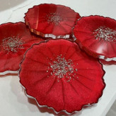 ظرف سرو و پذیرایی رزینی قرمز ب همراه6عدد پیش دستی