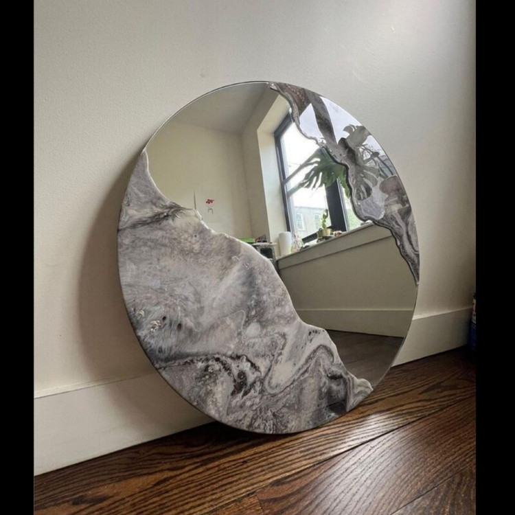آینه رزینی یه طرح خاص و جذاب که با اجرا بک لایت پشت کار جذابیت کار میتونین چند برابر کنید رنگ رزین دور کار سلیقه ای قطر کار قابل تغییر و نمونه کار سفارشی هم عکس بفرستین روی آینه براتون اجرا میشه