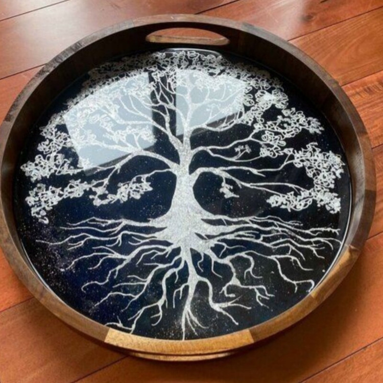 سینی رزینی چوبی طرح درخت رویایی