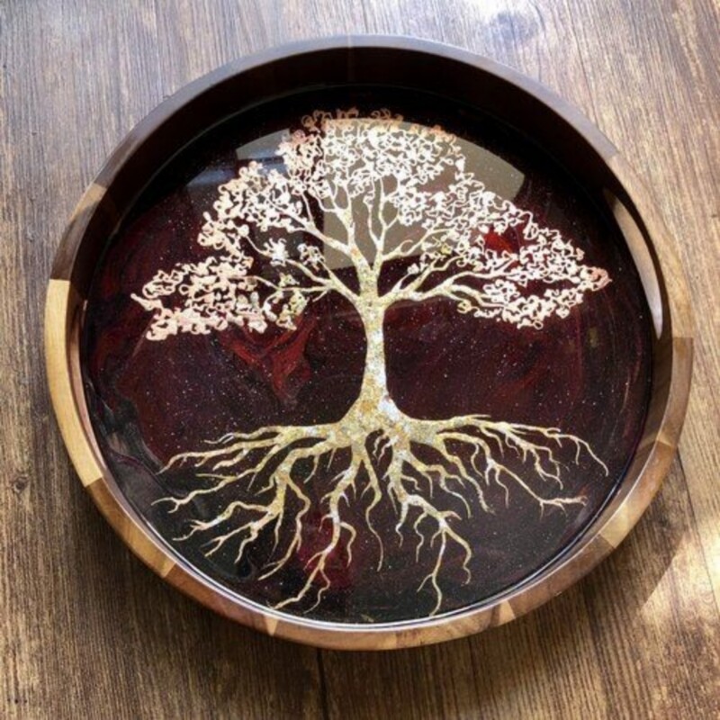 سینی رزینی چوبی طرح درخت رویایی