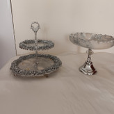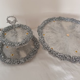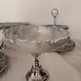 سرویس پذیرایی 4تکه شامل میوهخوری بزرگ قطر ۴۰ ،آجیل خوری دو عدد شیرینی خوری دو طبقه ابعاد طبقات ۳۰ و ۲۵ سانت میباشد