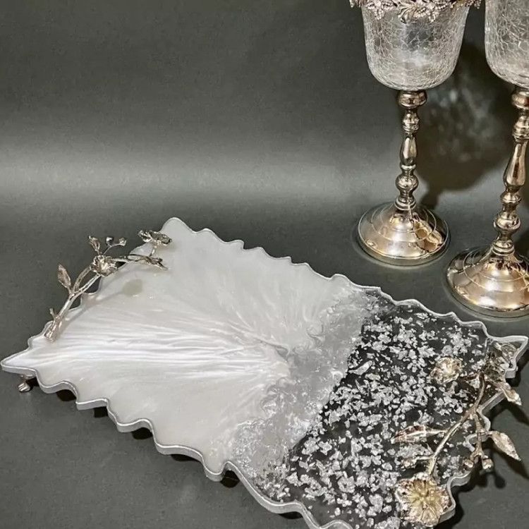 سینی رزینی سینی رزین و ورق نقره دسته ها رنگ ثابت