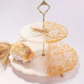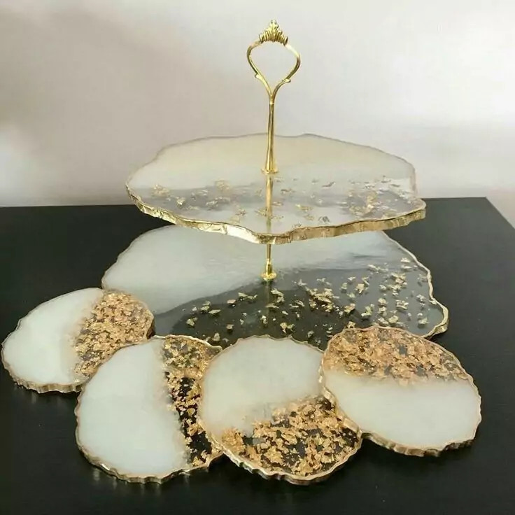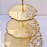 شیرینی خوری دوطبقه رزینی شیک و لاکچری با ورق طلا ب همراه 6عدد زیر استکانی