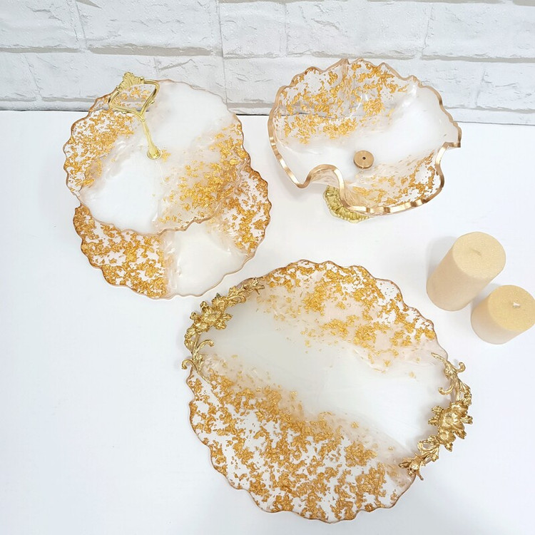 ست پذیرایی 3 تکه رزینی شامل شیرینی خوری آجیل خوری سینی جهیزیه عروس