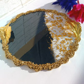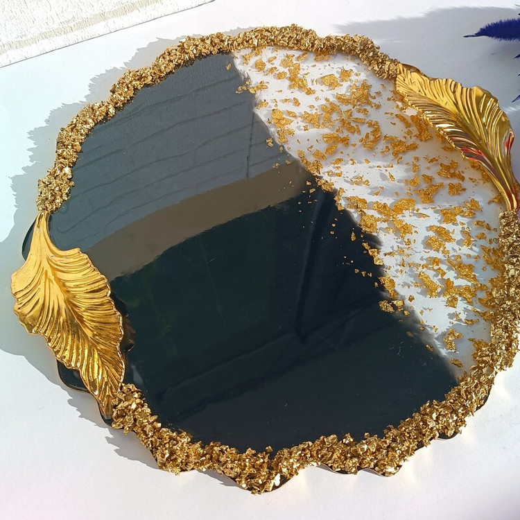 سینی رزینی مشکی طلایی جنس کار رزین هست سبک و قابل شست وشو قتبل اجرا در سایز و رنگهای مختلف