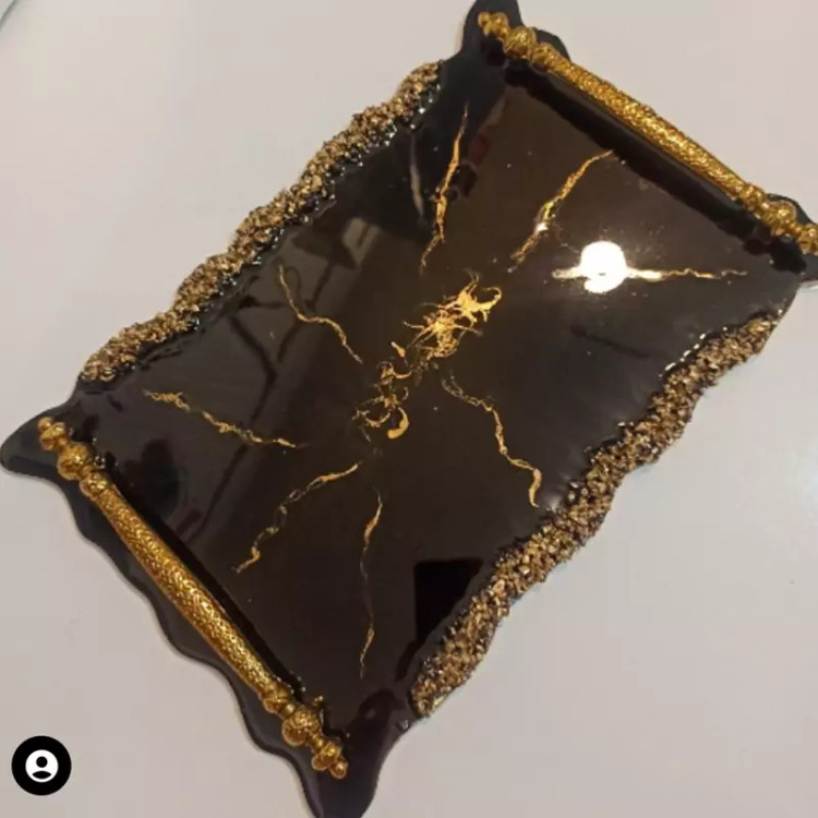 سینی رزینی مستطیلی مشکی طلایی سبک قابل شستوشو رنگ و سایز قابل تغیراست برای راهنمایی و سفارش پیام دهید