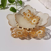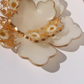 پیش دستی و کاسه رزینی پیش دستی سایز ۲۰ کاسه سایز ۱۳ کارشده با گل بابونه و ورق طلا 12پارچه