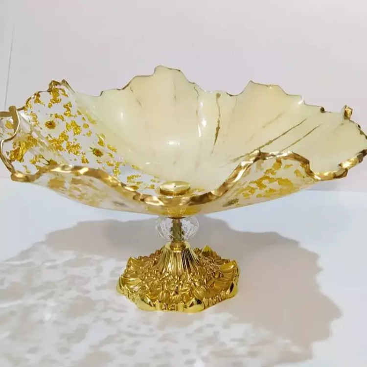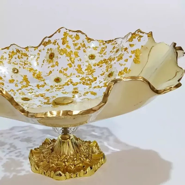 میوه خوری جدید و لاکچری رزینی کارشده با ورق طلا با گل بابونه قطر۳۰