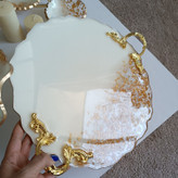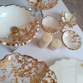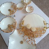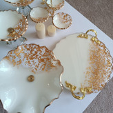 سرویس پذیرایی 5 تکه شامل میوهخوری بزرگ قطر ۴۰ ،آجیل خوری ،شکلات خوری، یک عدد اردوخوری، یک عدد سینی مستطیل بزرگ طول۴۰