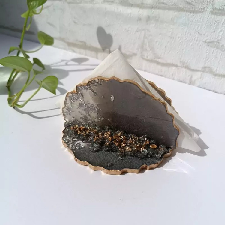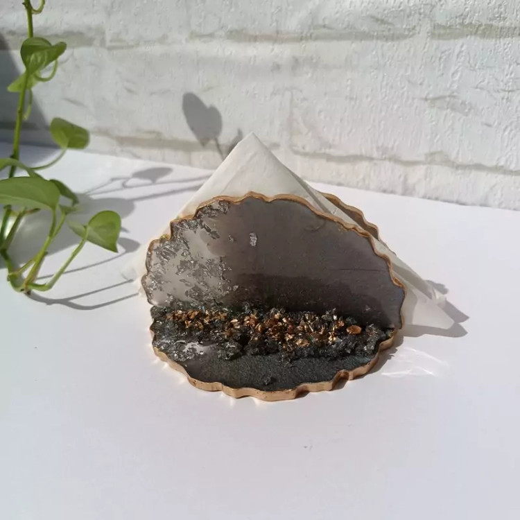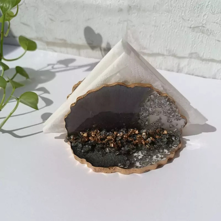 جادستمال کاغذی رومیزی جدید وشیک رزینی ورق نقره ای