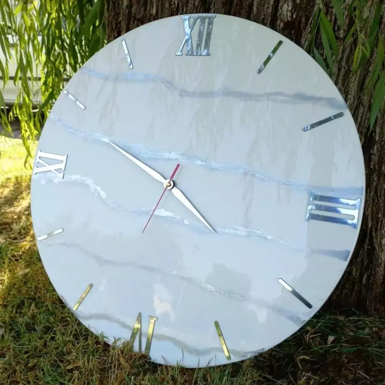 ساعت دیواری رزینی سفید نقره ای سایز 40