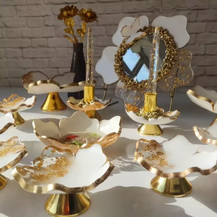هفت سین رزینی ست کارشده با ورق طلا و لاکچری و خاص پسند