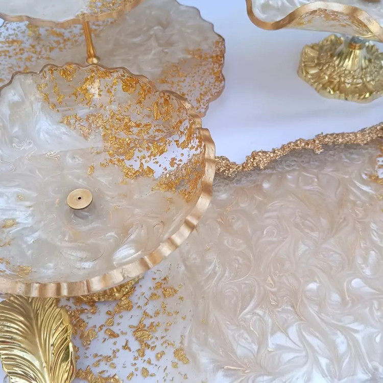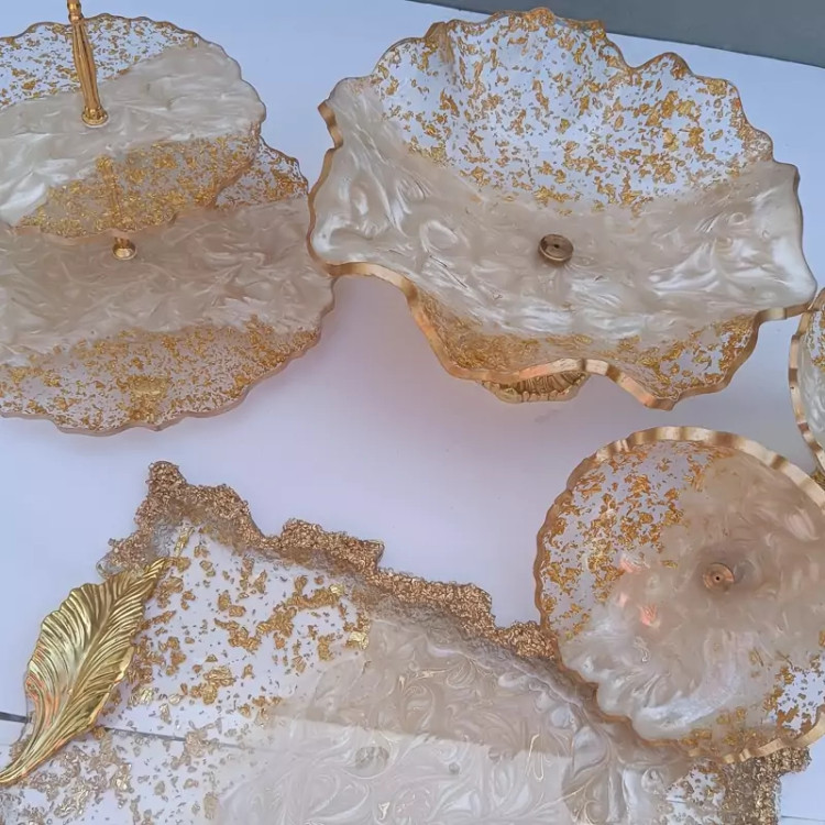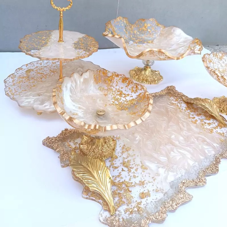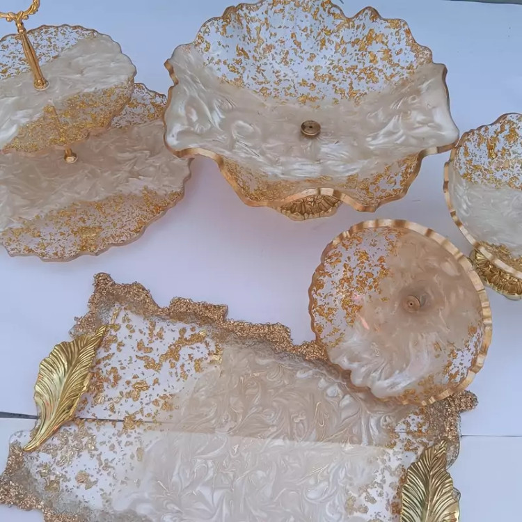 ست پذیرایی رزینی جهیزیه عروس طرح نبات 5تکه