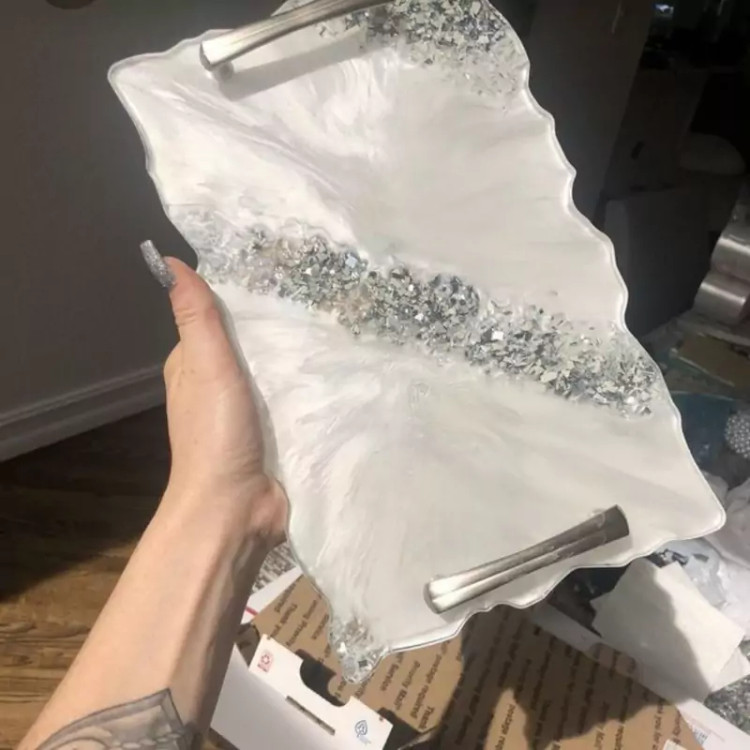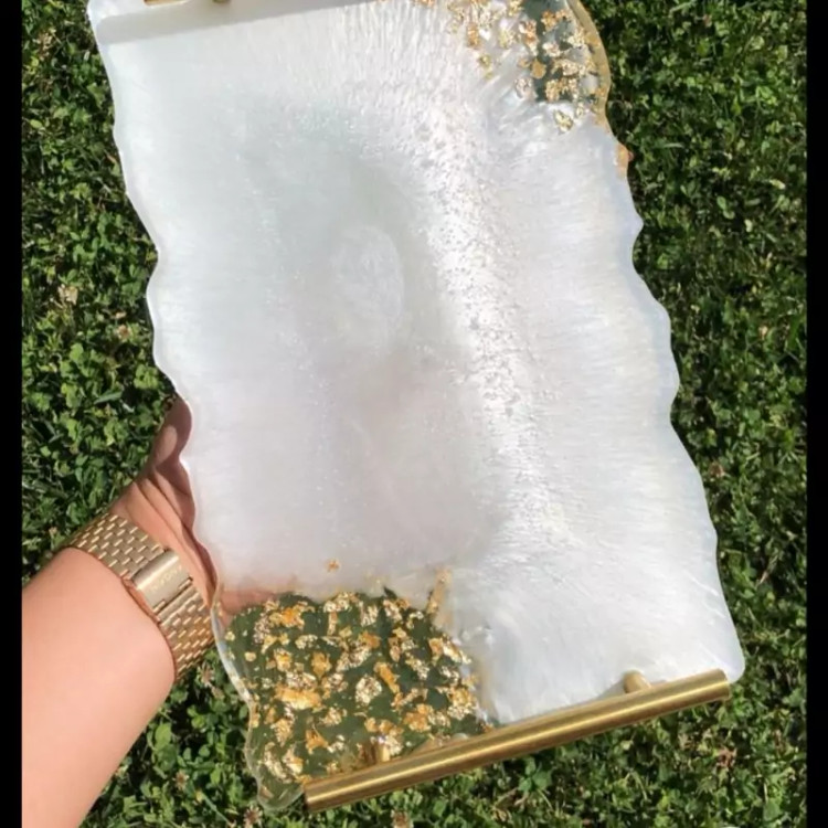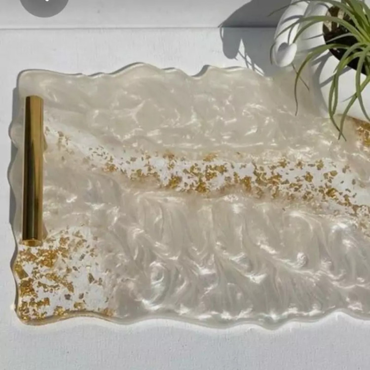 ست ظروف پذیرایی کارشده با رزین و ورق طلا یک عدد سینی