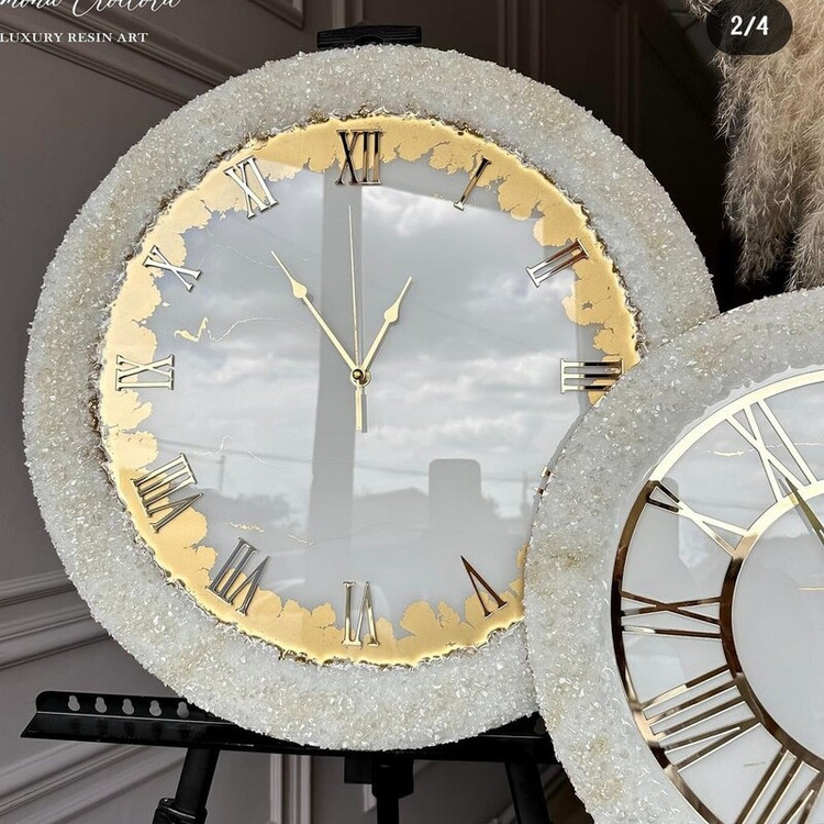 ساعت دیواری سفید طلایی رزینی جهیزیه سایز60
