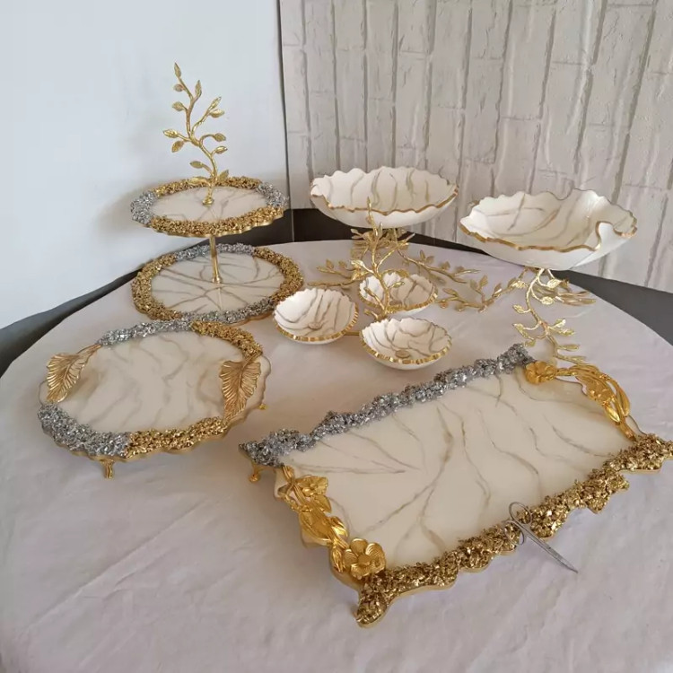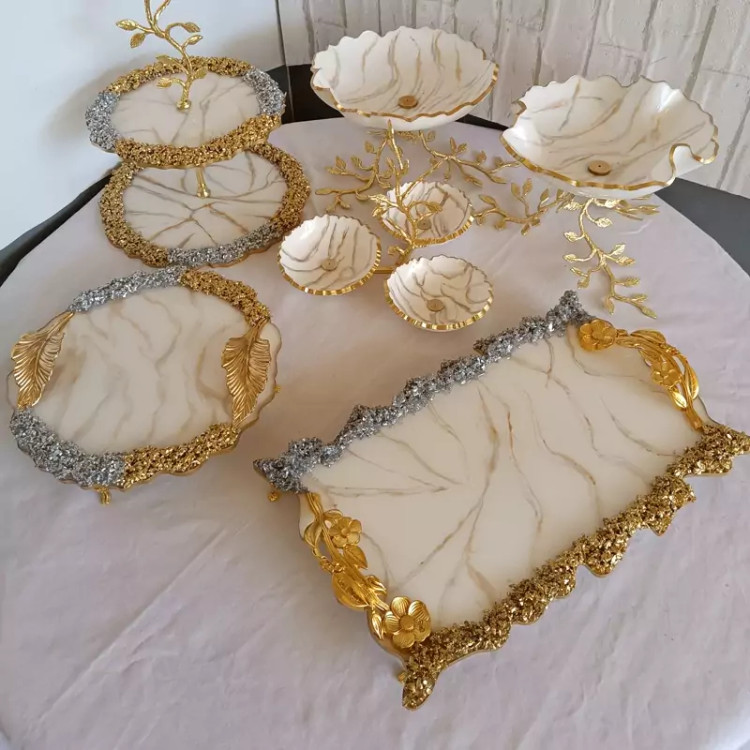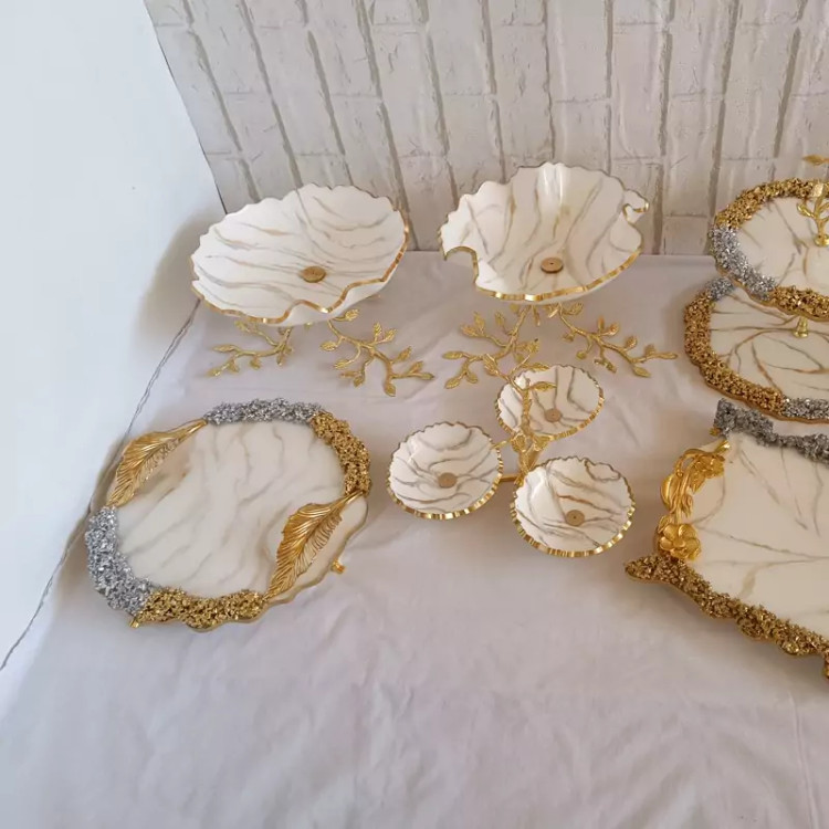 ظروف مخصوص پذیرایی ۶ عددی پایه برنجی رزینی جهیزیه
