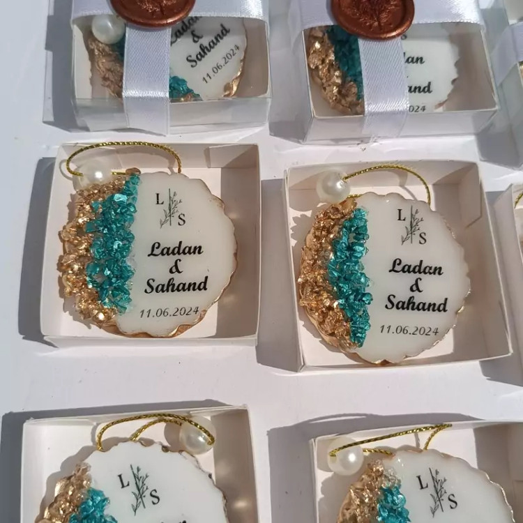 گیفت رزینی سایز 5 سانت البته هرسایزی که شما بخواید قابل اجراست این کار همراه با جعبه اهن ربا و نخ و مروارید می باشه هر رنگ وتعداد هم قابل سفارشه