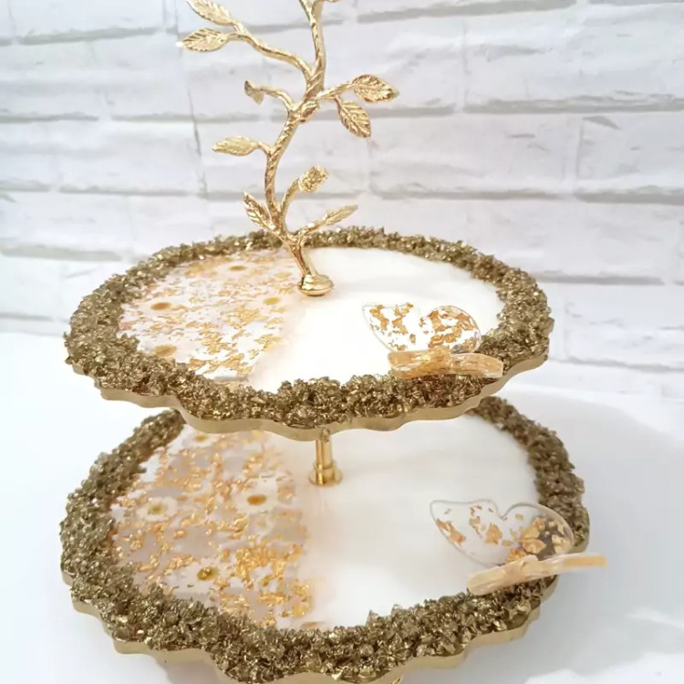 شیرینی خوری دوطبقه جدید و شیک رزینی با گل بابونه