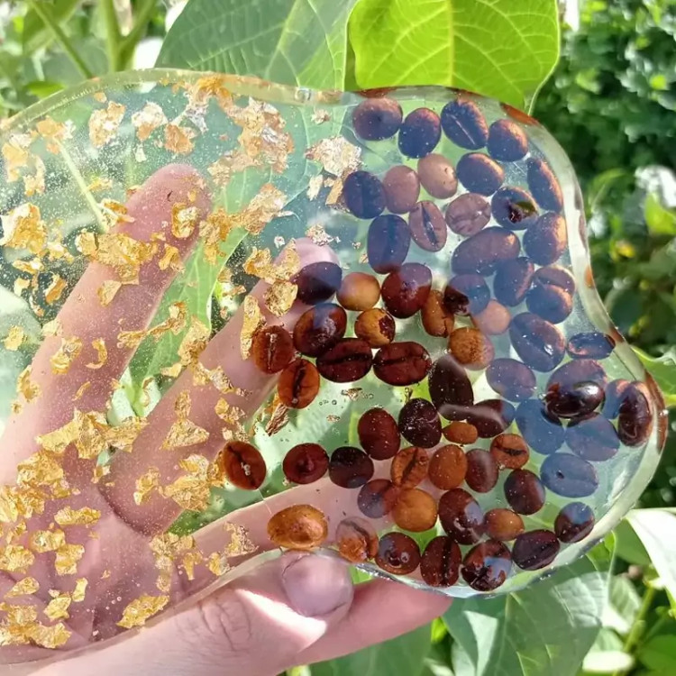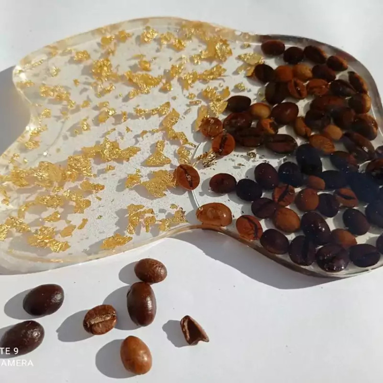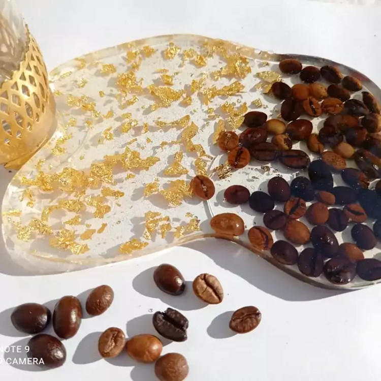 زیرلیوانی رزینی با قهوه کارشده با قهوه و ورق طلا مناسب پذیرایی و هدیه قابل اجرا باطرح ورنگ دلخواه