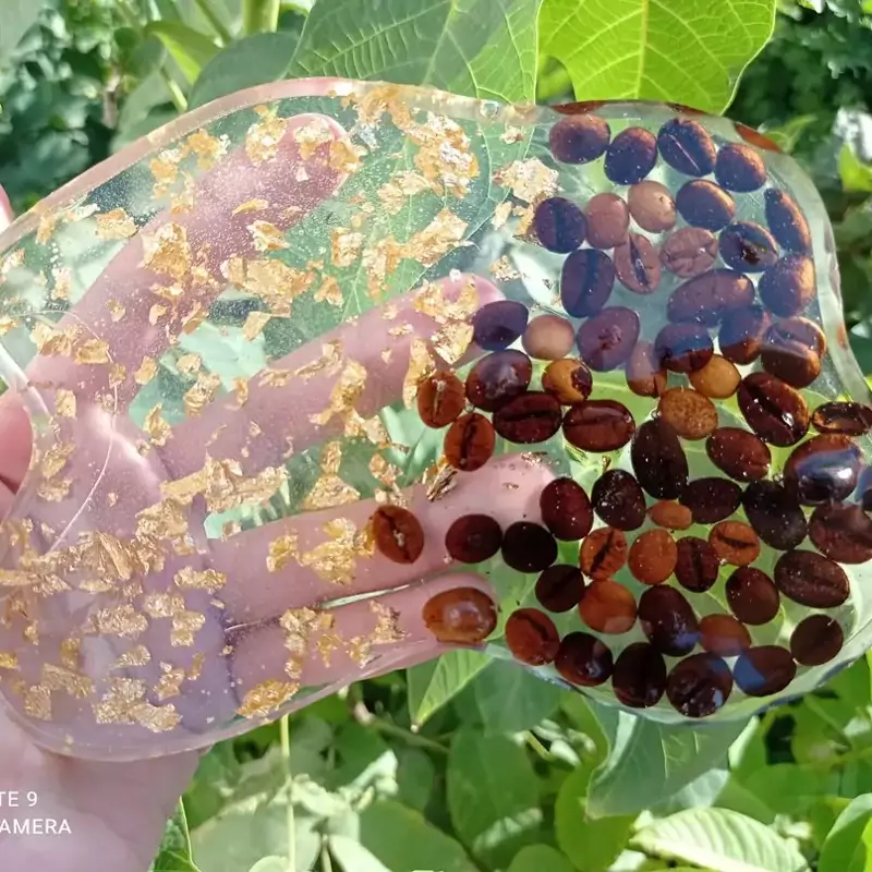 زیرلیوانی رزینی با قهوه کارشده با قهوه و ورق طلا مناسب پذیرایی و هدیه قابل اجرا باطرح ورنگ دلخواه