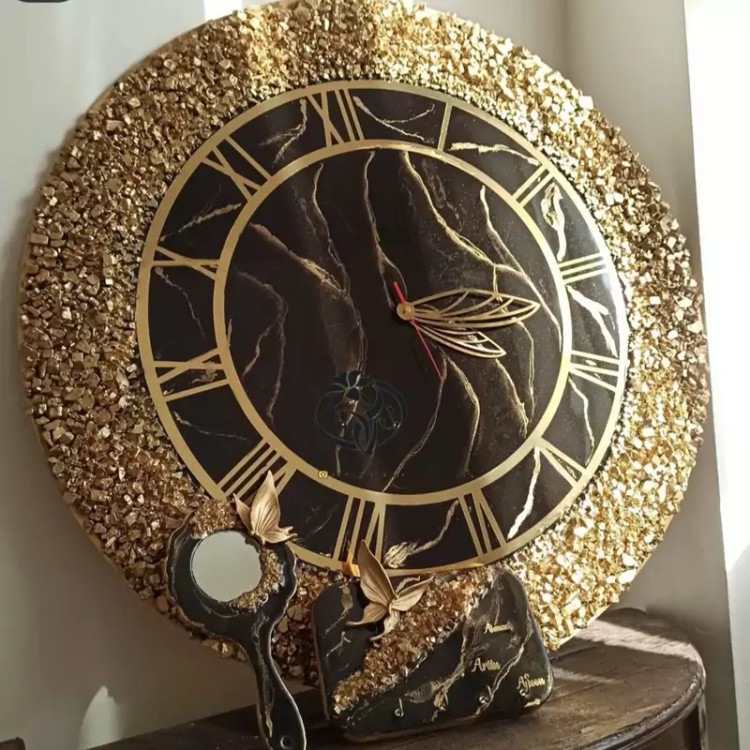 ساعت دیواری رزینی مشکی طلایی جهیزیه قطر60