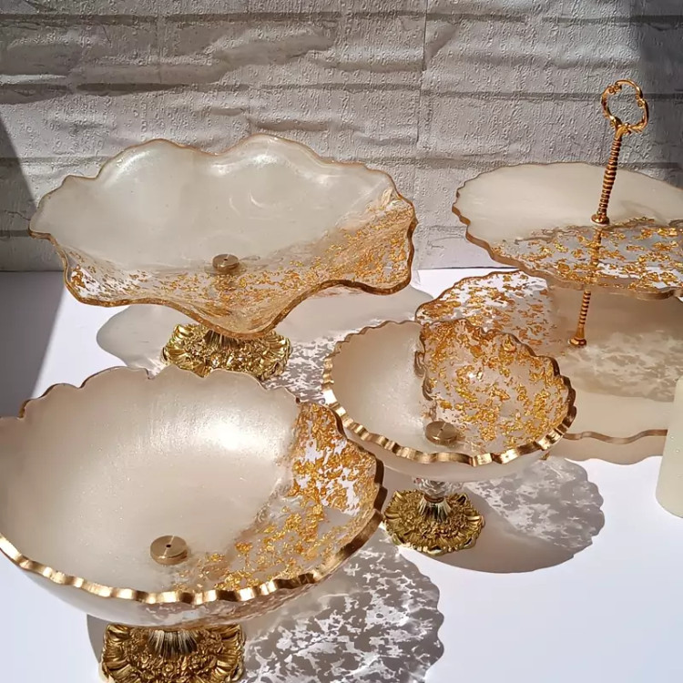 ست پذیرایی 4 تکه رزینی آجیل خوری میوه خوری شکلات خوری شیرینی خوری