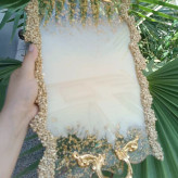 سینی مستطیلی سایز 40 در30کرم طلایی کارشده با کریستال مناسب پذیرایی و هدیه
