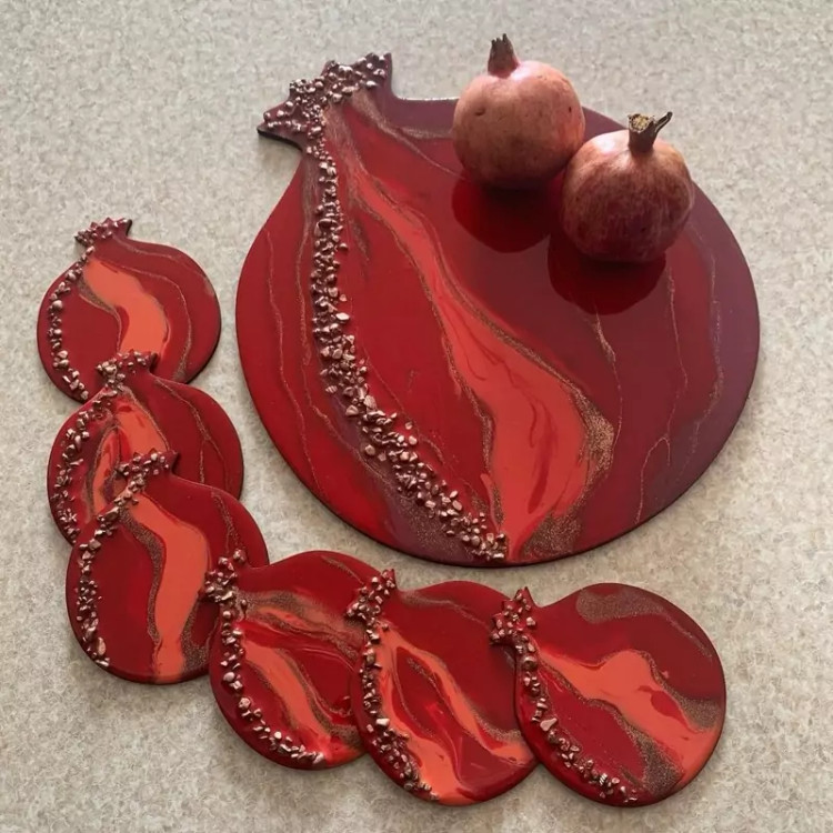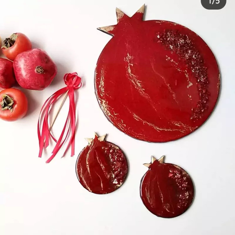 استند و سینی یلدایی طرح انار همراه با ۶ عدد زیرلیوانی انار قابل اجرا در سایز و طرح های مختلف باتوجه به سایز قیمت متغییر است برای راهنمایی و سفارش پیام دهید
