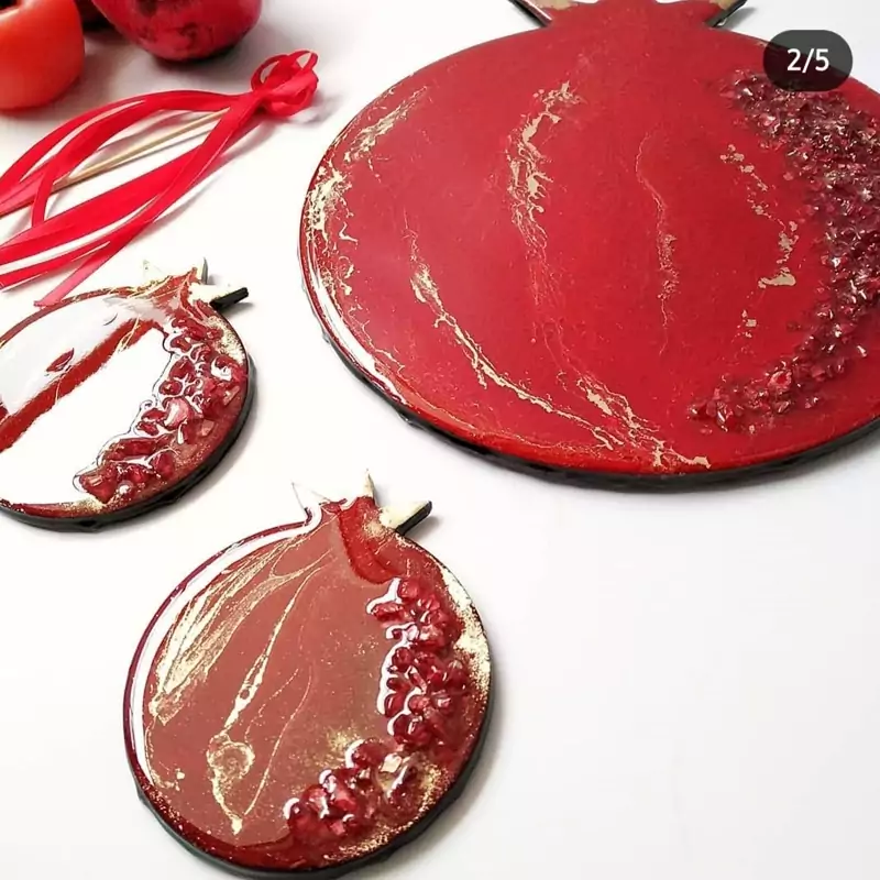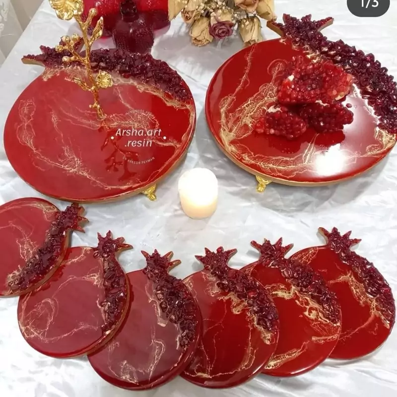 استند و سینی یلدایی طرح انار همراه با ۶ عدد زیرلیوانی انار قابل اجرا در سایز و طرح های مختلف باتوجه به سایز قیمت متغییر است برای راهنمایی و سفارش پیام دهید