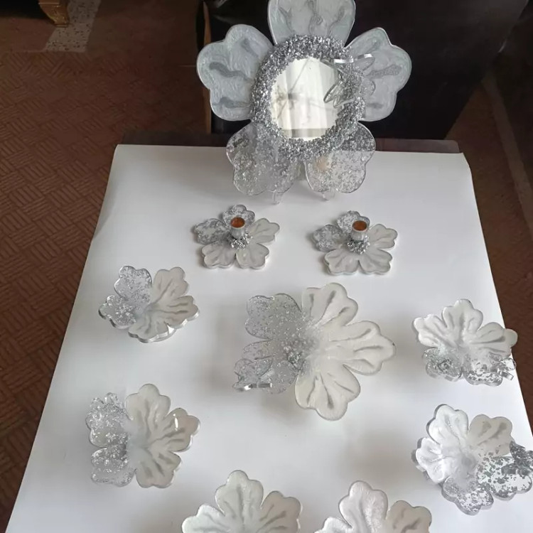 ست هفت سین جدید و لاکچری دست ساز نقره یی ۶ عددکاسه اینه ۲ عددجاشمعی ظرف سبزه آیتم ها قابل تغییر هستند