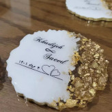 گیفت و استند عقد و عروسی رزینی با ورق طلا قطر20