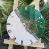 ساعت دیواری رزینی سبز سفید قطر۶۰