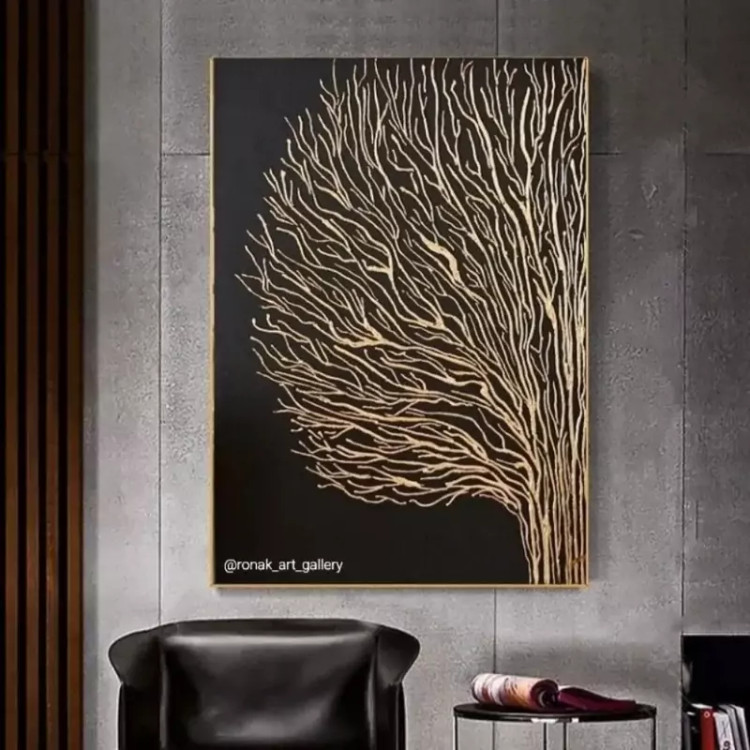 تابلو دکوراتیو ورق طلا و پتینه طرح درخت آرزوها80*100
