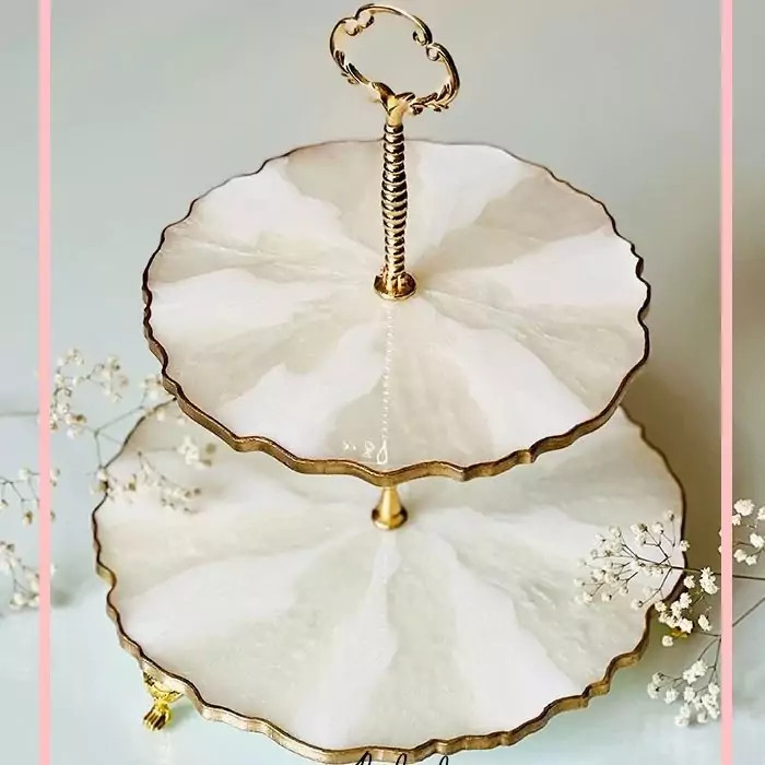 شیرینی خوری رزین با طرح سفید بسیار زیبا ضد خش و نشکن قابل شستشو