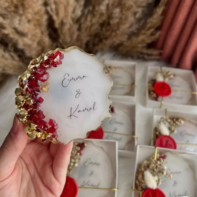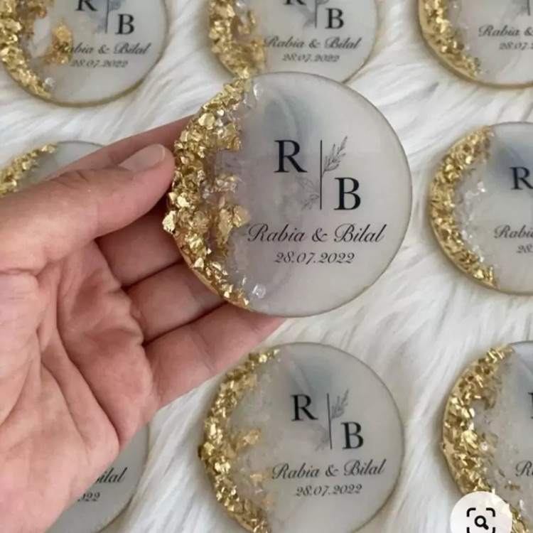 گیفت عقد وعروسی رزینی ورق طلا و فرم های دلخواه شما