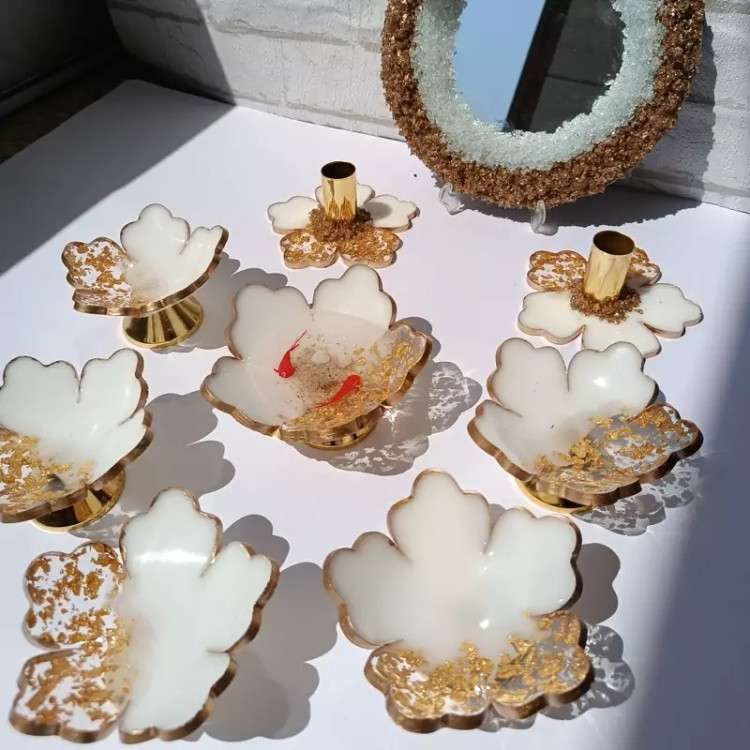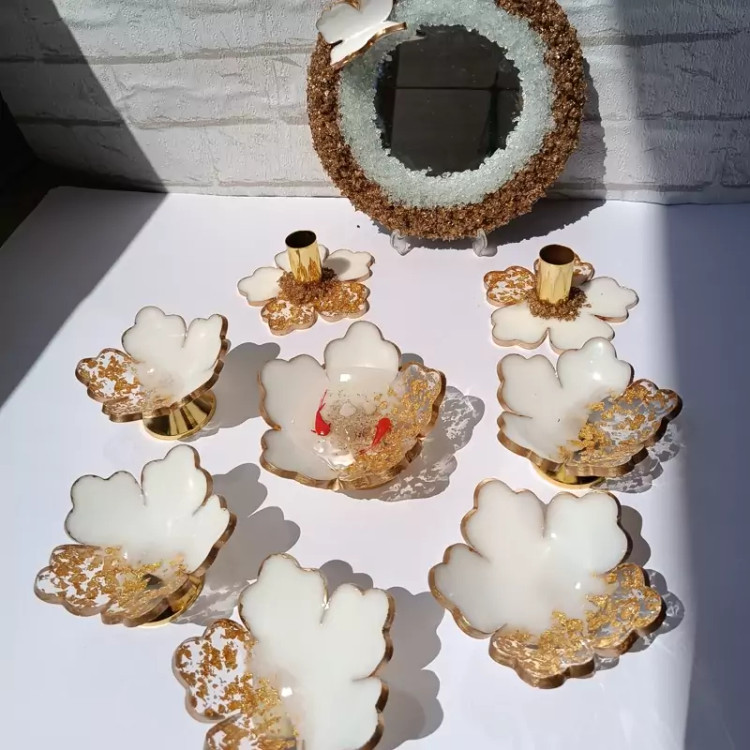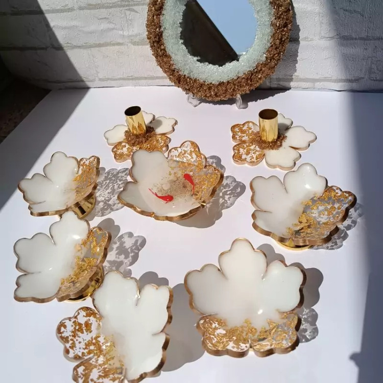 ست هفت سین رزینی شیک و جدید کارشده با ورق طلا و دست صاز