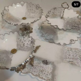 سرویس پذیرایی شامل میوهخوری بزرگ قطر ۴۰ ،آجیل خوری ، شکلات خوری و یک عدد شیرینی خوری دو طبقه ابعاد طبقات ۳۰ و ۲۵ سانت و یک سینی مستطیل طول ۳۰ میباشد ب همراه شش عدد پیاله هفت سین دو عدد شمعدان و یک عدد آینه و یک کاسه بزرگ قطر۳۰