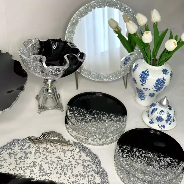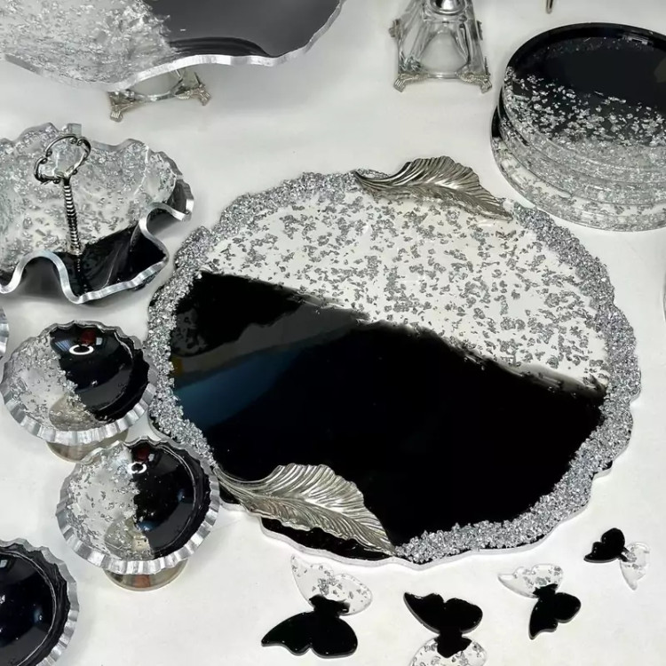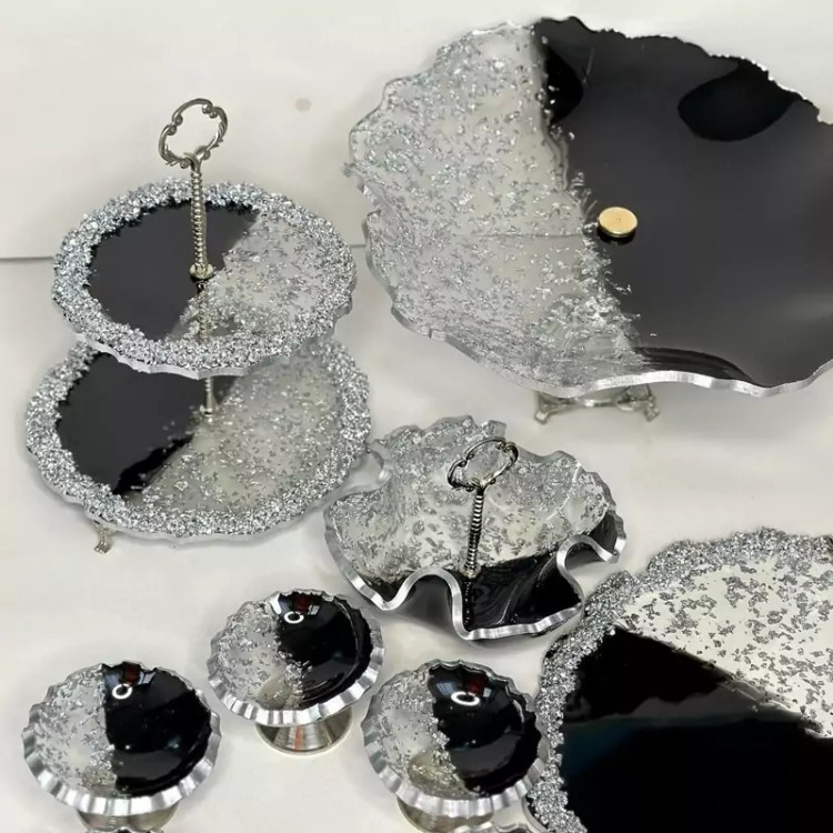 سرویس پذیرایی رزینی سرویس ۶نفره جهیزیه عروس مشکی نقره ای